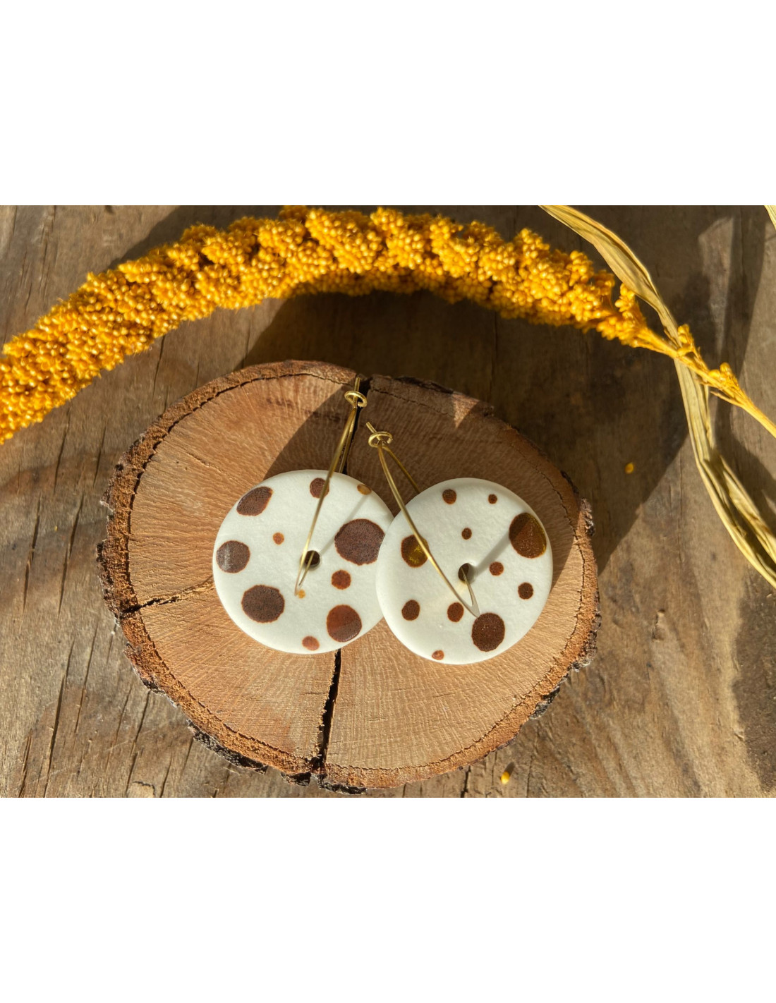 Pendientes de acero inoxidable chapado en oro con porcelana decorada con esmalte oro rosa.